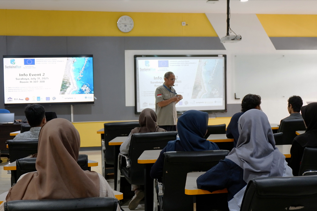 The initial Info Events for the SustainaBlue Project were successfully organized in Malaysia and Indonesia by the four participating HEIs (UMT, USM, ITS, and UI) in early June. These launch events aimed to raise awareness about the project’s objectives and anticipated outcomes, while also encouraging active participation and engagement. The events were highly successful, attracting a diverse group of stakeholders, including teaching and administrative staff from HEIs, researchers, students, representatives from the blue industry, as well as officials from educational and higher education authorities, and local government bodies.
